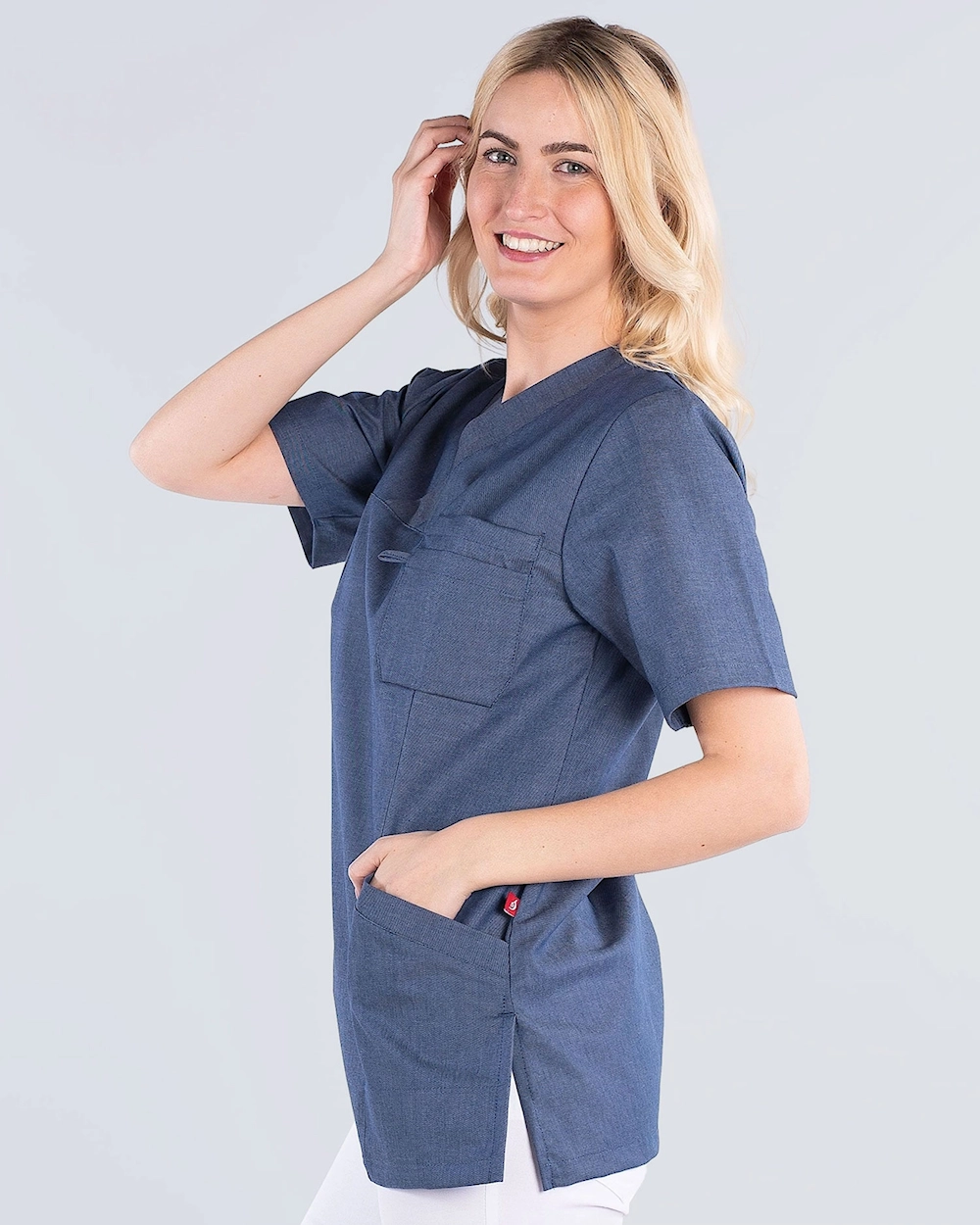 Vårdtunika tillverkad i XLA stretch för ett skönt och bekvämt plagg med gott om rörelsevidd. Tunikan är lätt a-linjeformad för en fin passform. Två sidfickor och en bröstficka ger gott om plats för diverse arbetsredskap, pennor och block.