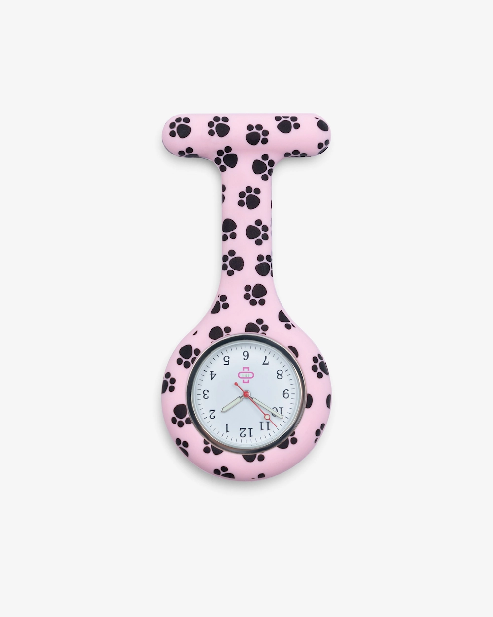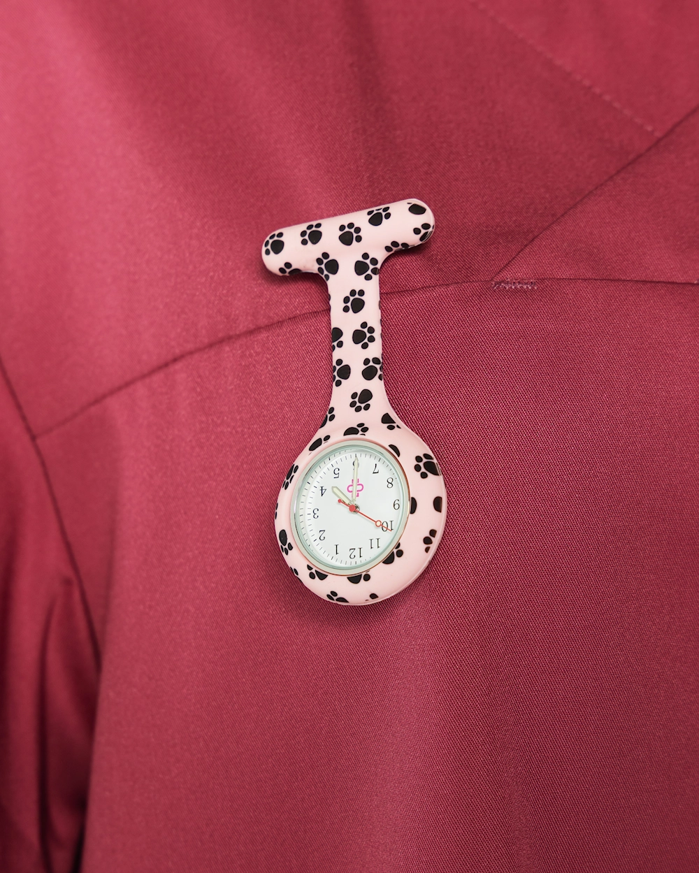Sjuksköterskeklockan fästs enkelt på önskat plagg med hjälp av en säkerhetsnål. Klockans skal är helt i silikon vilket gör det till ett perfekt och hygieniskt alternativ för dig som jobbar inom vården.