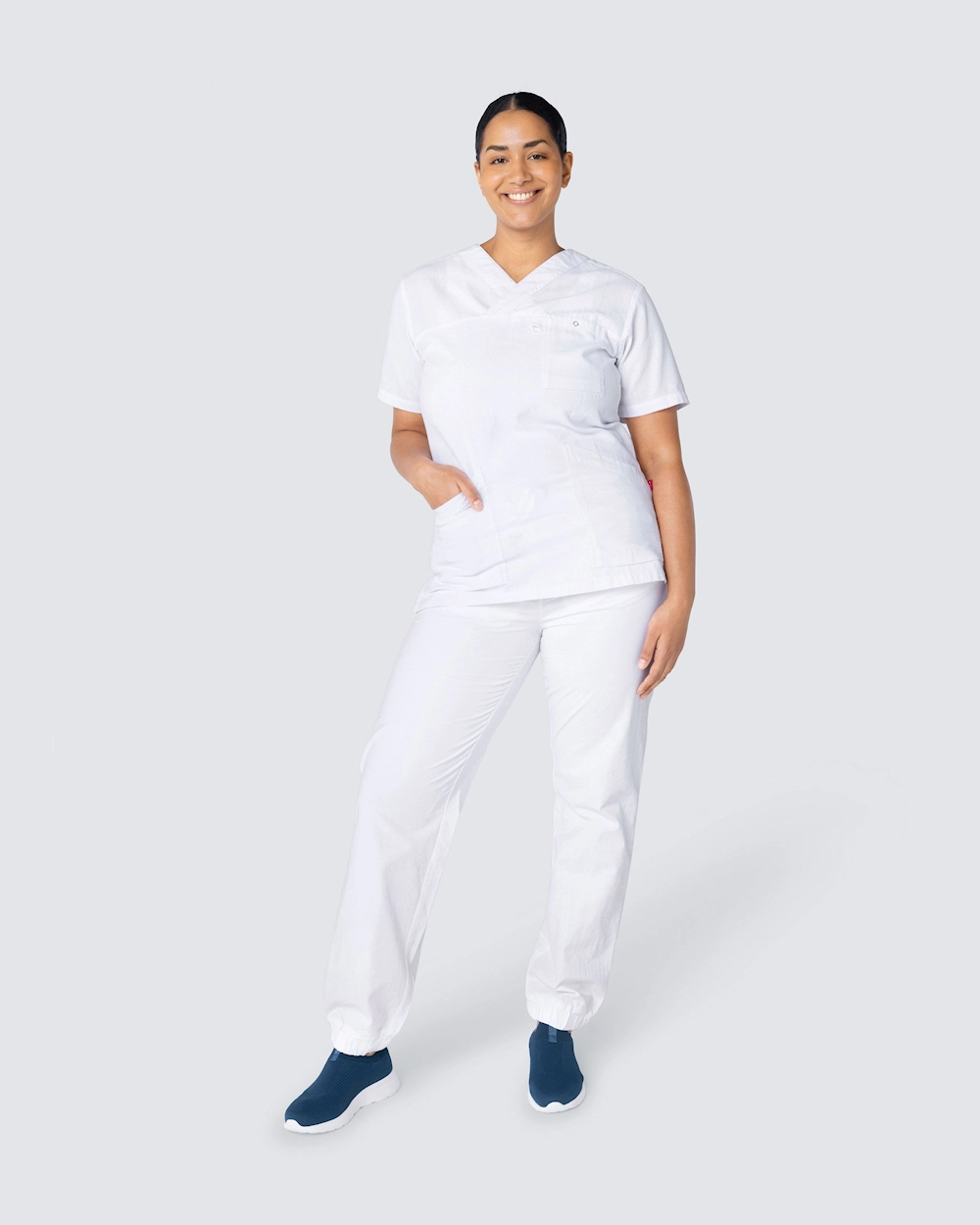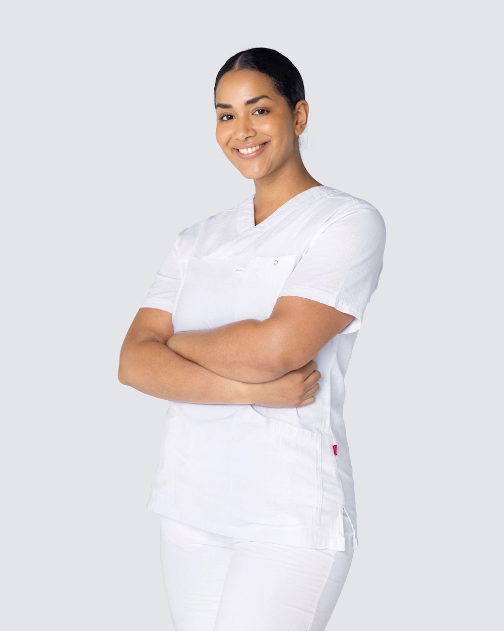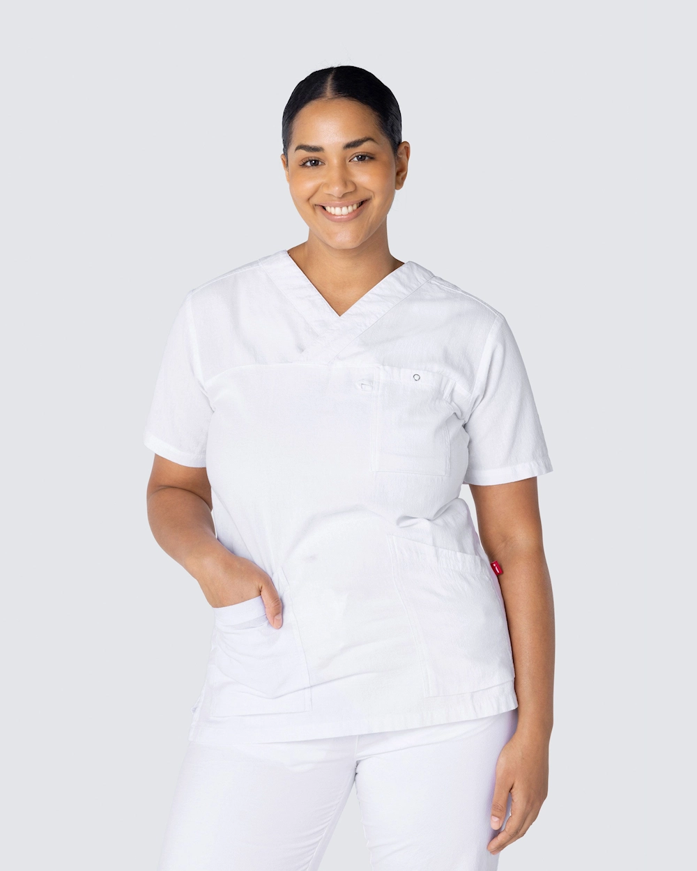 Bekväm bussarong i krinklad bomull i en lätt insvängd modell som lyfter fram dina former. South Wests bussarong i krinklad bomull har en mycket mjuk komfort, hög andningsförmåga och en luftig design som ger maximal rörelsefrihet. Bussarongen har en klassisk v-ringning och figurnära passform som ger en mycket fin silhuett. Med två rymliga sidofickor, varav en utrustad med nyckelhållare och telefonficka, och en bröstficka med ringtryckknapp har du gott om plats för pennficka, sax, ID-kort och alla andra redskap som behövs för en dag i vården.