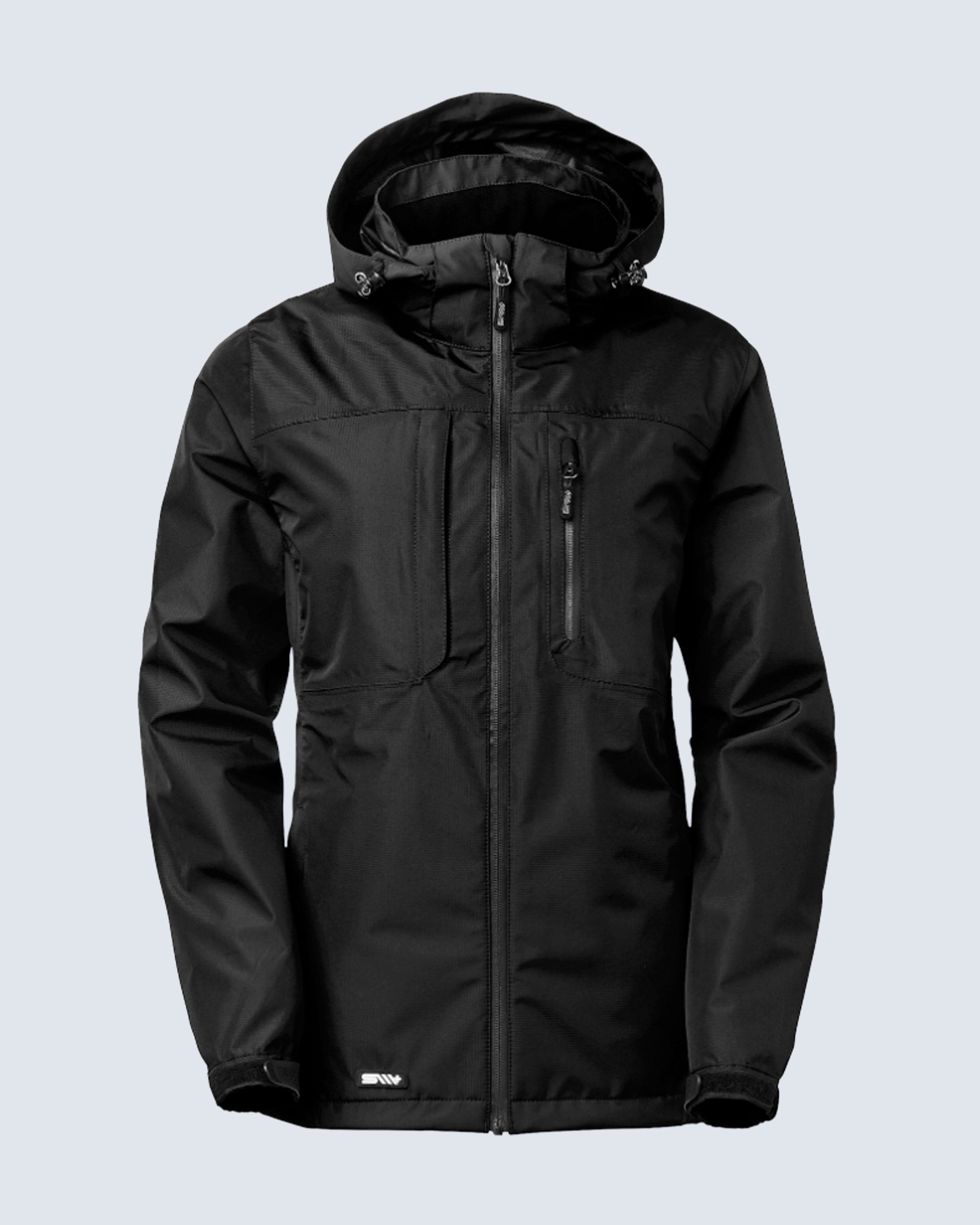 Praktisk och allsidig vind- och vattentät skaljacka i polyester ripstop-material, vilket är ett material med förstärka trådar i rutmönster som gör tyget både starkt och mindre risk att det repar sig. Fin dampassform och snygga fickdetaljer. Tejpade sömmar. Gummibadge i nederkant. Justerbar och avtagbar huva. Gummiflärp med logo för justering av ärm.