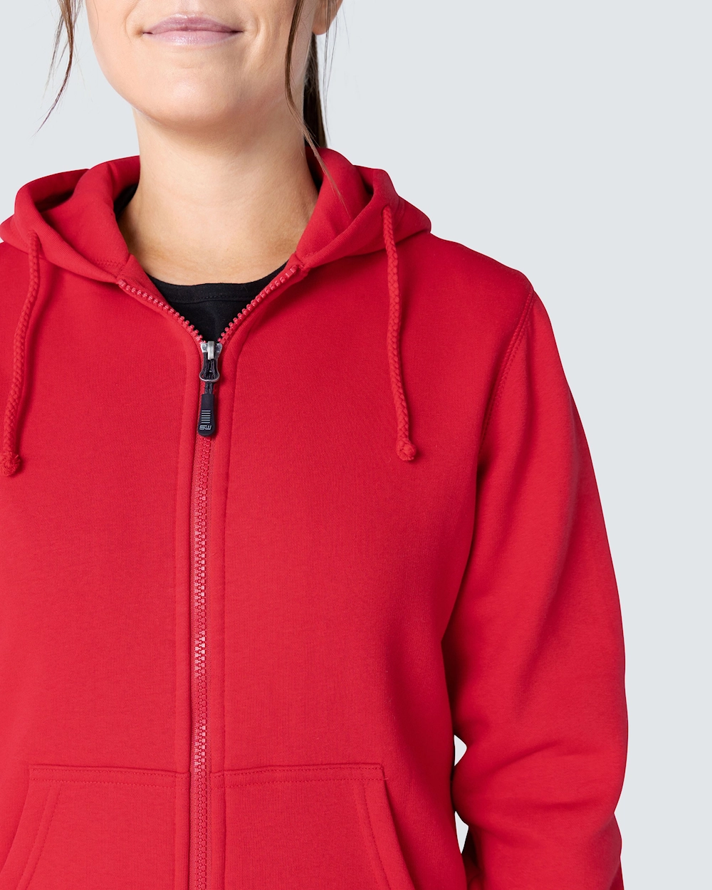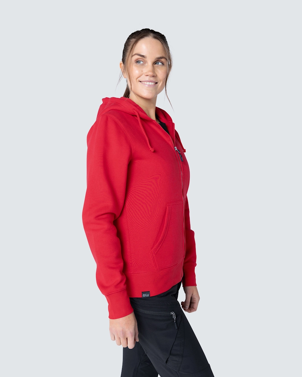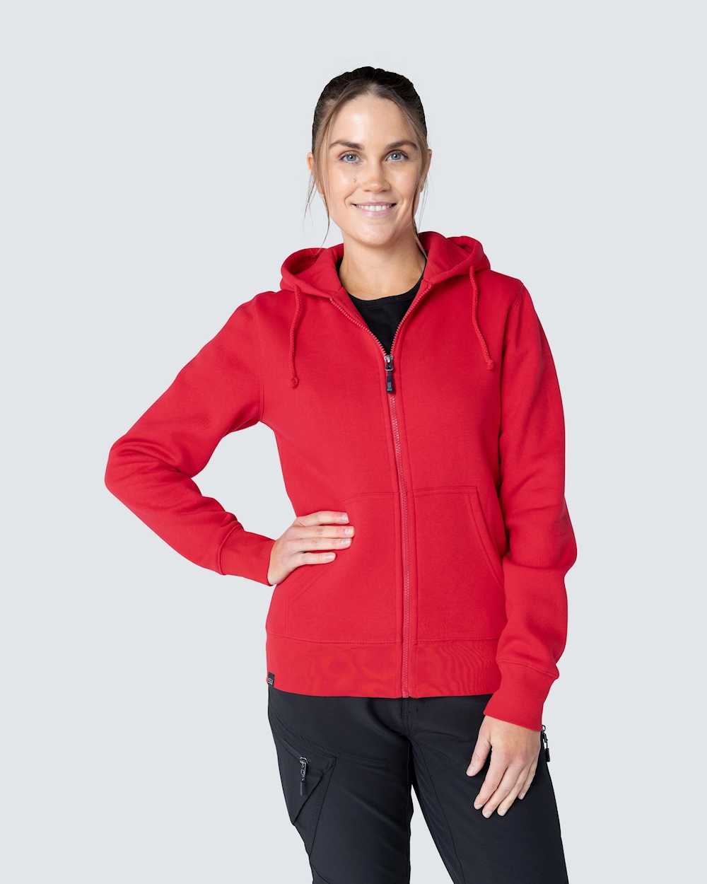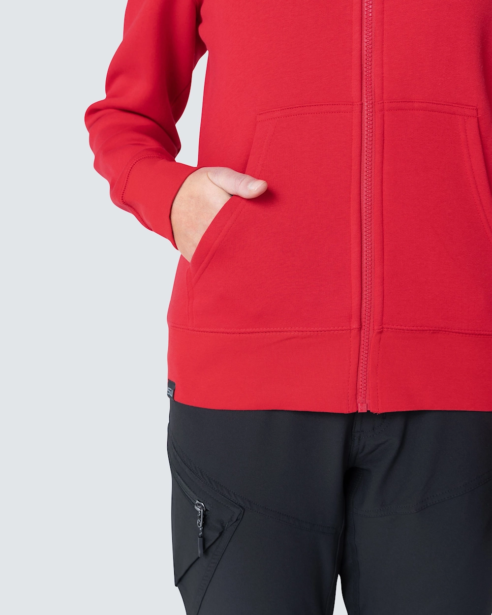 Collegejacka med fin dampassform. Dubbla tyglager i huvan och två frontfickor. Elastisk mudd i nederkant och vid ärmslut.