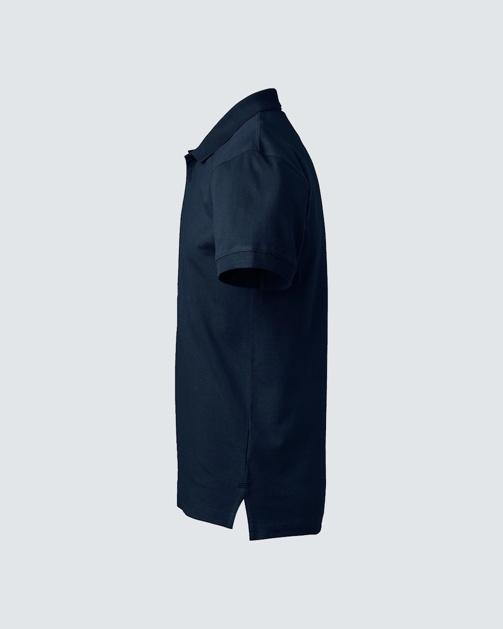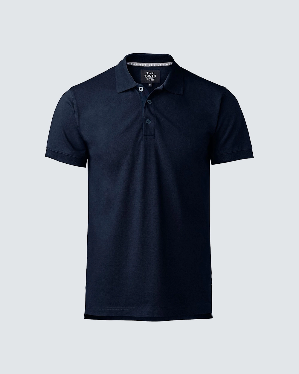 Piké med dekorativt band i nacke och sprund. Halvmånesöm i nacken. Knappslån har knappar som går ton i ton, fiskbensmönstrad insida samt diskret brodyr ovanför sprund.