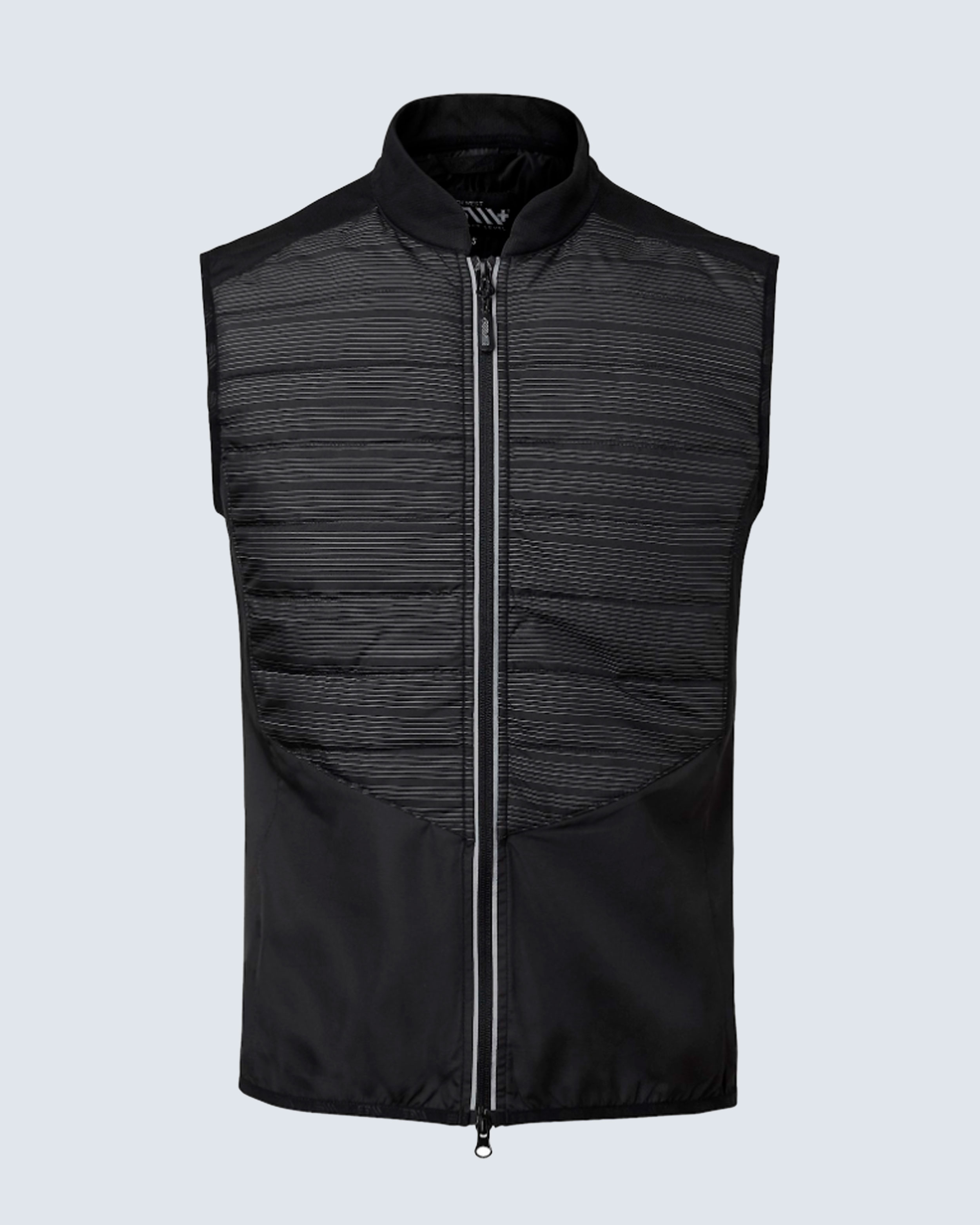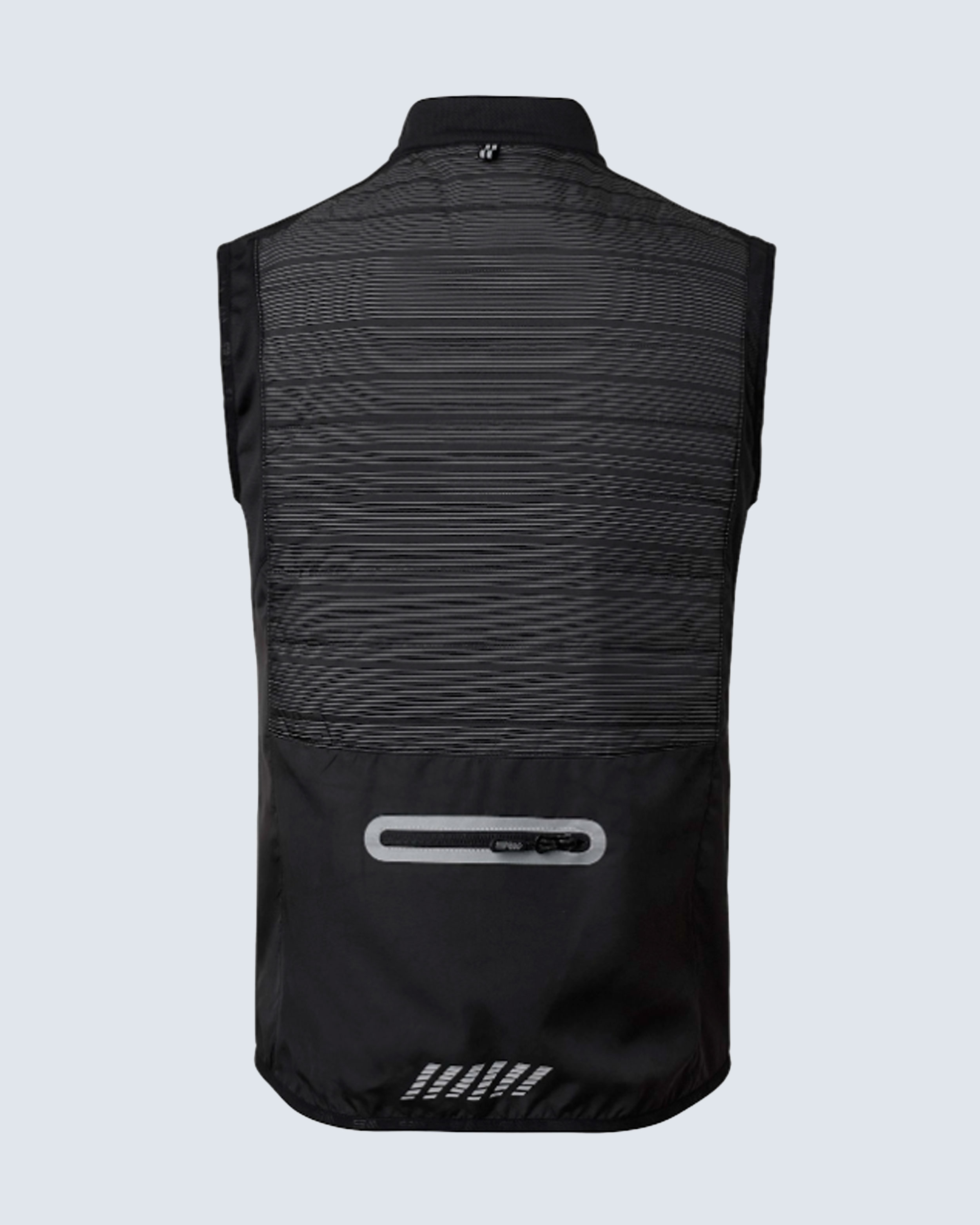 Träningsväst med lätt padding. Invävd reflextråd för att öka synligheten i mörker. Meshpartier i sidan för ventilation. Tvåvägsdragkedja fram med reflex och ficka bak. Matchande zip-pullers med invävd reflextråd.