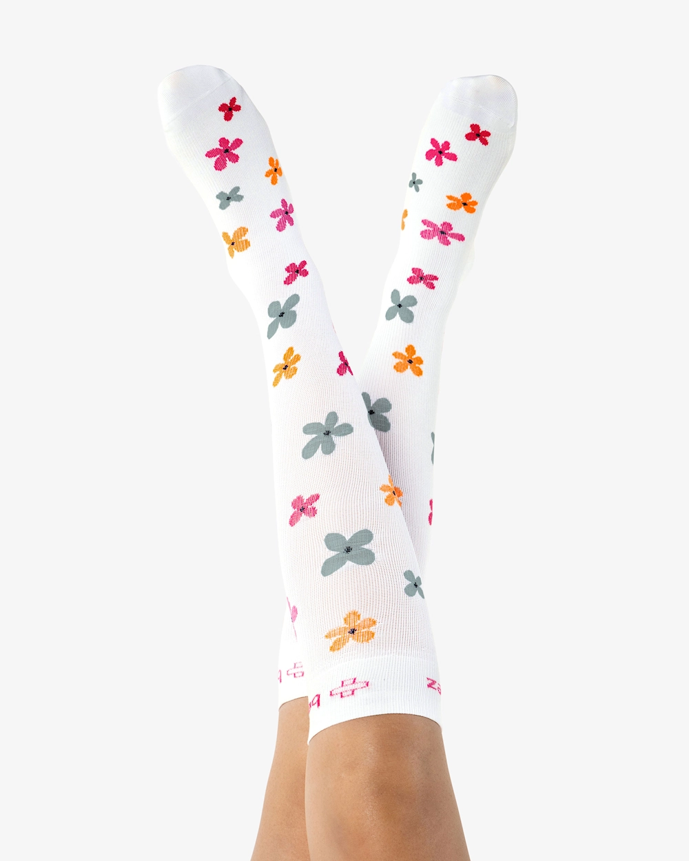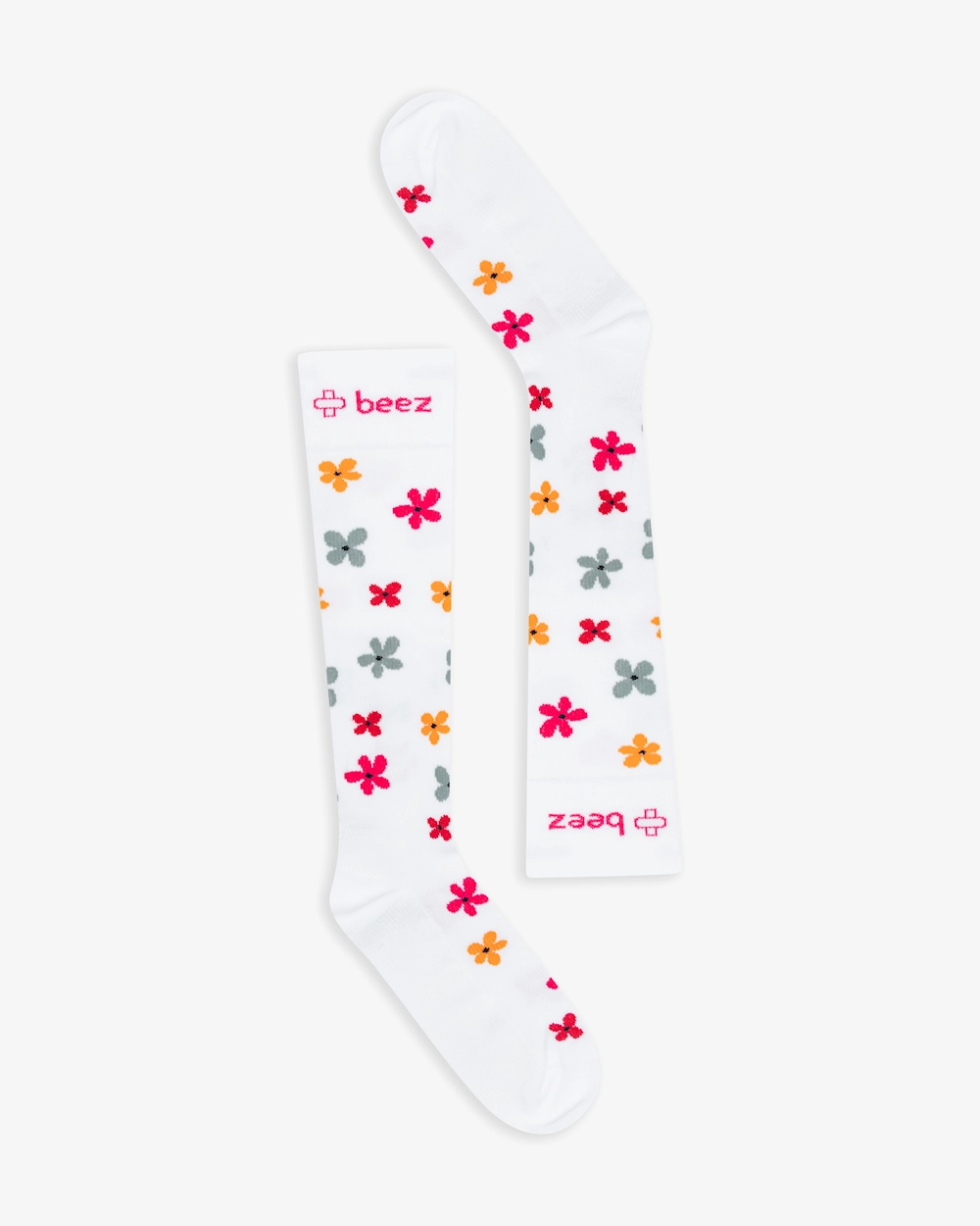 Stödstrumpa Lilly Ljusbeige Blommig Rosa