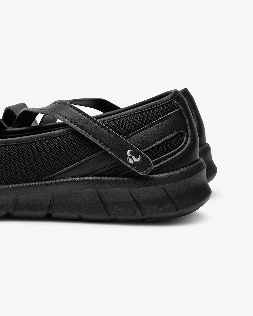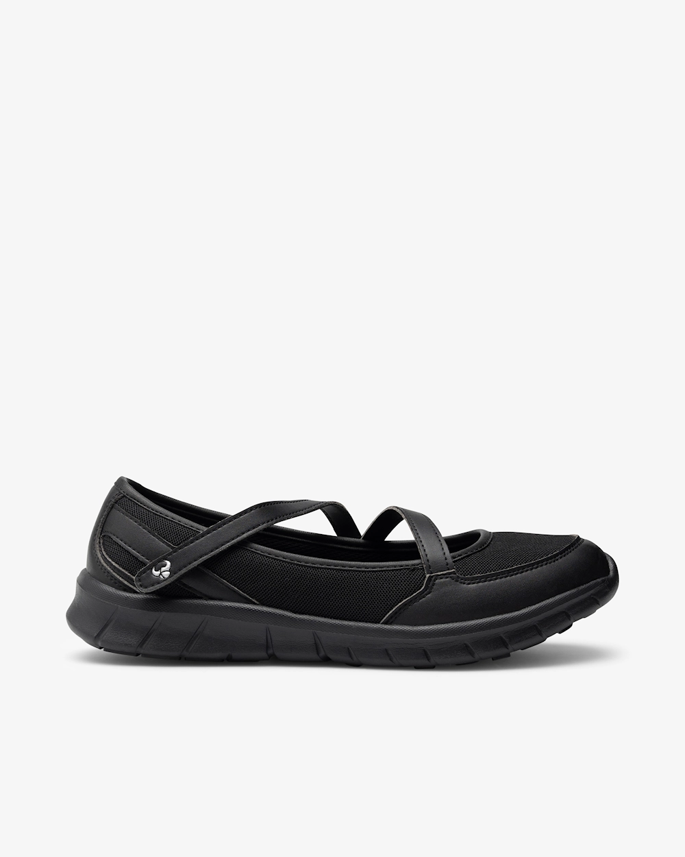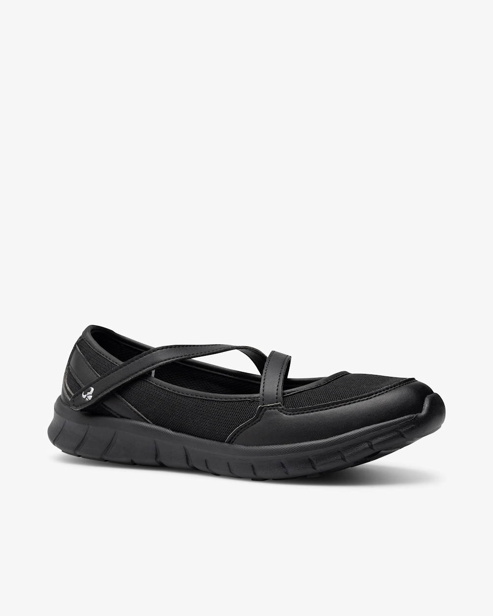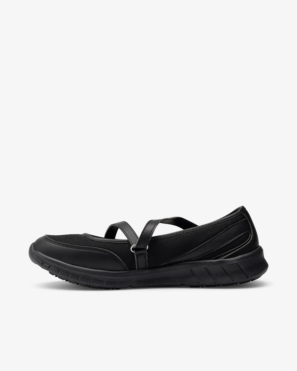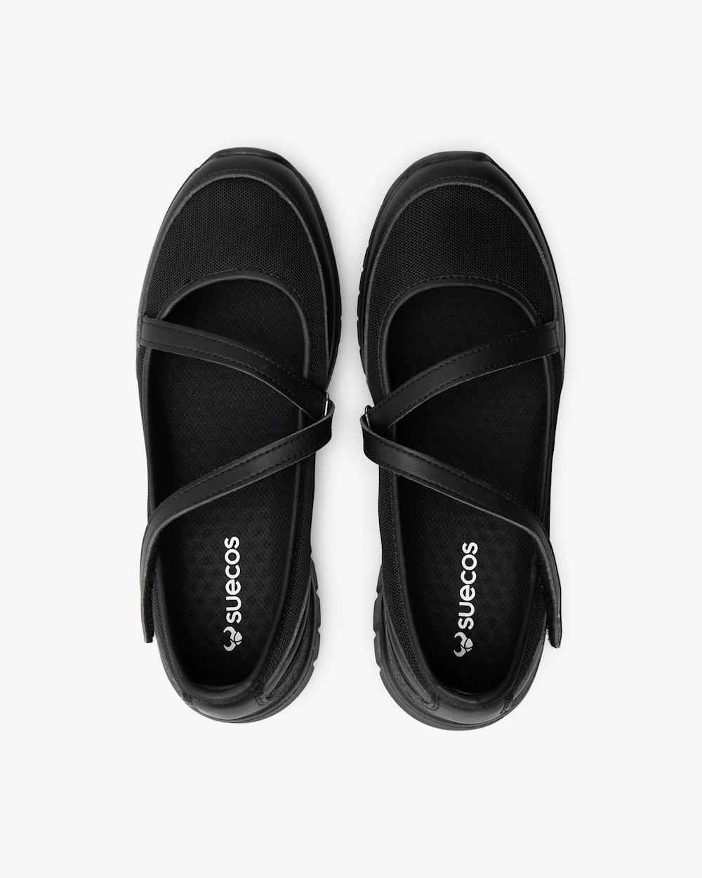 Lätt, smidig och ergonomisk utformad ballerinasko i sportig dammodell. Med sin tidlösa och stilrena design passar denna sko lika väl på jobbet som på fritiden. Hög andningsförmåga, vilket skapar en sval och behaglig miljö för dina fötter. Uttagbar innersula och halksäker yttersula. Justerbara kardborreremmar som möjliggör anpassningsbar passform. Denna sko har stötdämpande egenskaper och bredare häl för extra stabilitet. Enkel att rengöra med tvål och vatten.
