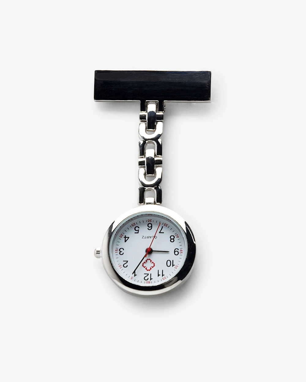 Denna snygga sjuksköterskeklocka hjälper dig hålla enkelt koll på tiden, räkna sekunder och hålla rätt på tidtagning vid omvårdnad och behandlingar. Klockan kan smidigt rengöras med sprit. Systeruret fäster du enkelt på din tunika eller bussarong med en nål, vilket är perfekt för dig som jobbar i vården och inte får ha armbandsur under arbetspasset. Matcha din sjuksköterskeklocka med andra färgglada accessoarer så som pennfickor, en personlig namnskylt eller färgglada stödstrumpor och sätt en personlig touch på dina arbetskläder.