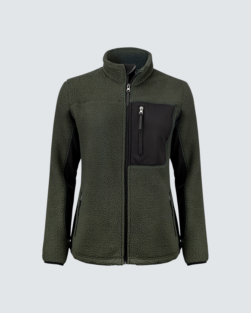 Pilefleecejacka i lätt insvängd modell erbjuder både komfort och stil. Designad med svarta paneler av bondat material för extra hållbarhet.