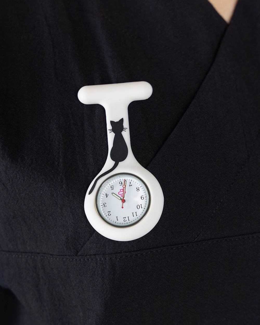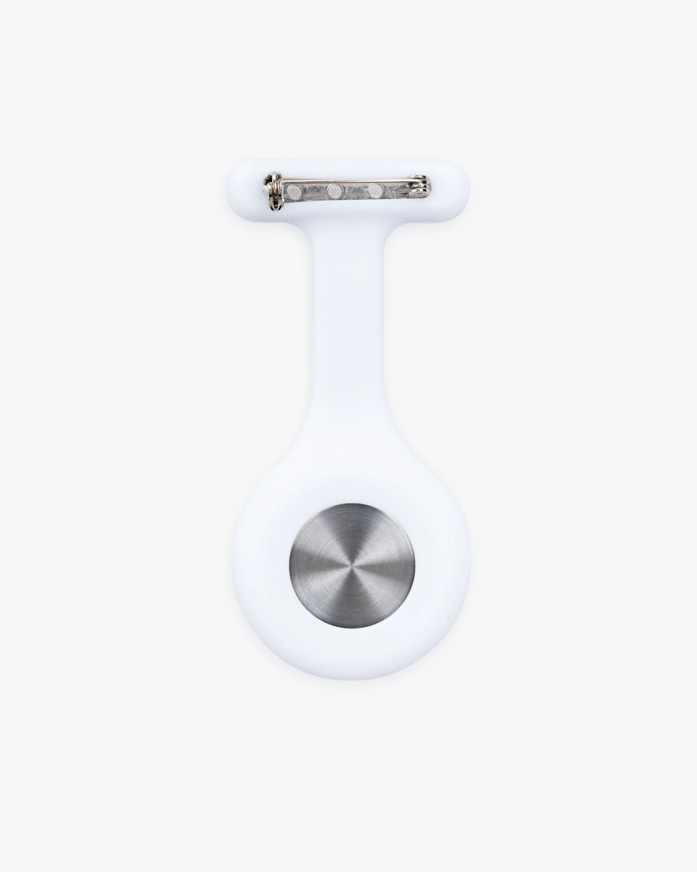 Snygg och smidig sjuksköterskeklocka med silikonskal vilket gör att den är enkel att hålla ren. Det går lätt att dela på ur och skal för rengöring – och lika lätt är det att byta färg på skalet! Fästes i arbetsbussargongen med hjälp av en säkerhetsnål. En sjuksköterskeklocka är det perfekta tillbehöret för dig inom vården då man inte får ha armbandsur av hygienskäl. Batteri medföljer.